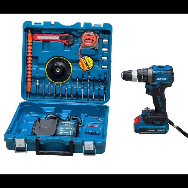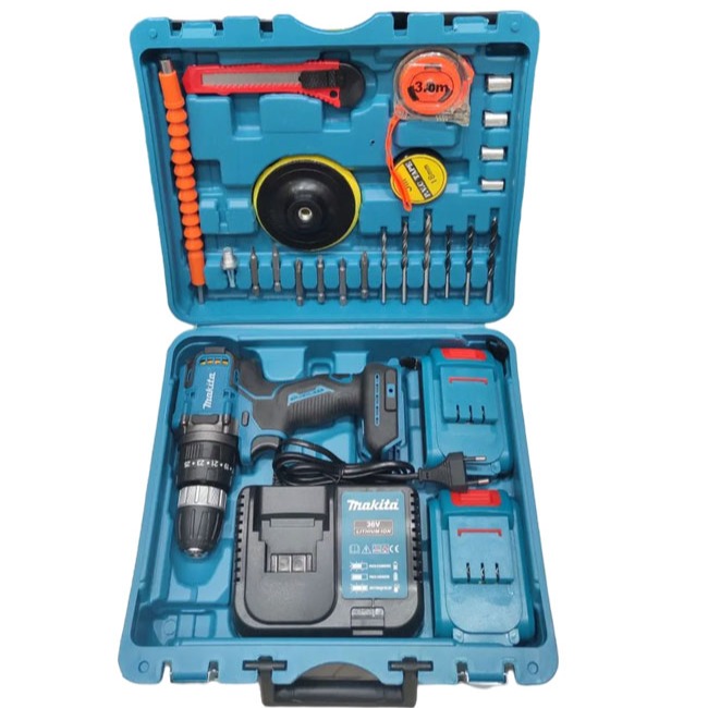 پد پولیش ، مته آهن ، مته چوب ، متر ، کاتر ، رابط فنری ، ۲ باطری ، تبدیل بکس ، پیچگوشتی سر مته